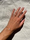 Anellini morbidi, realizzati con una catenina in argento 925 o argento 925 dorato con una perla di fiume al centro. La catenina permette che l'anello si adatti perfettamente al dito, creando un effetto luminoso e delicato. Bellissimi sia da soli, sia combinati fra loro, sono perfetti da abbinare anche al braccialetto Alyra, ispirato alla stessa linea.
