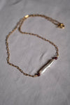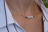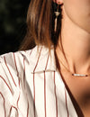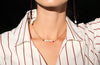 Collana chocker composta da una catenina paperclip in argento 925 dorato e un’elegante perla di fiume centrale con due piccoli granati. Molto fine e versatile, è perfetta sia da sola sia layered con altre collane.